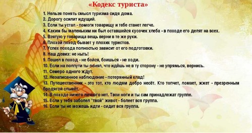 Внимательно ознакомьтесь с маршрутом и прогнозом погоды на ближайшие дни для территории, где вы планируете свой отдых. Даже при положительном прогнозе захватите тёплую и водонепроницаемую одежду на каждого члена семьи. А ваша аптечка должна предусматривать любые неприятности.